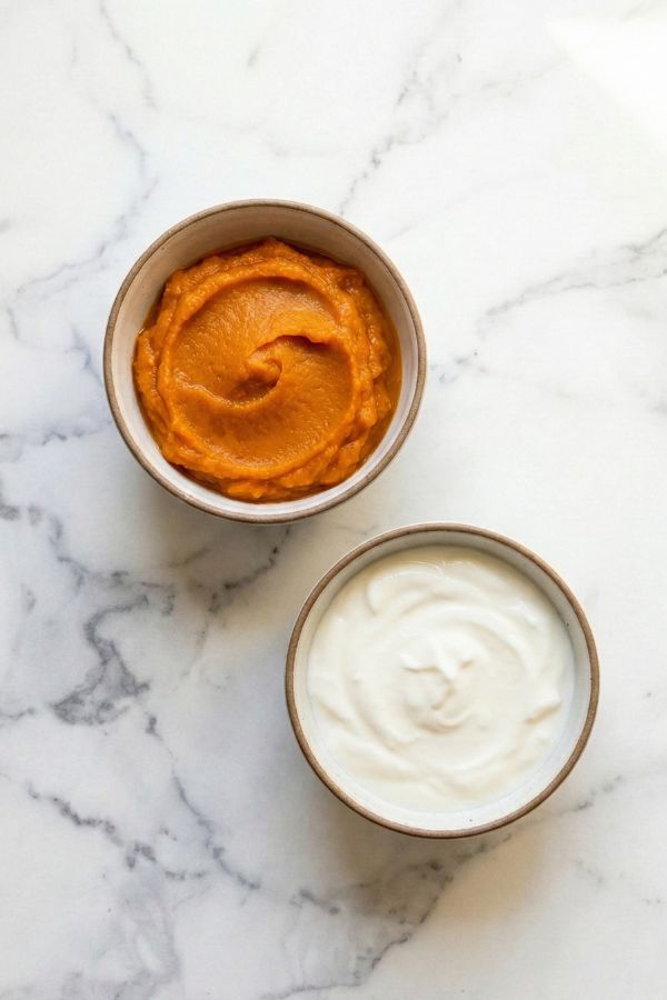 - Mix pumpkin and yogurt until smooth.
