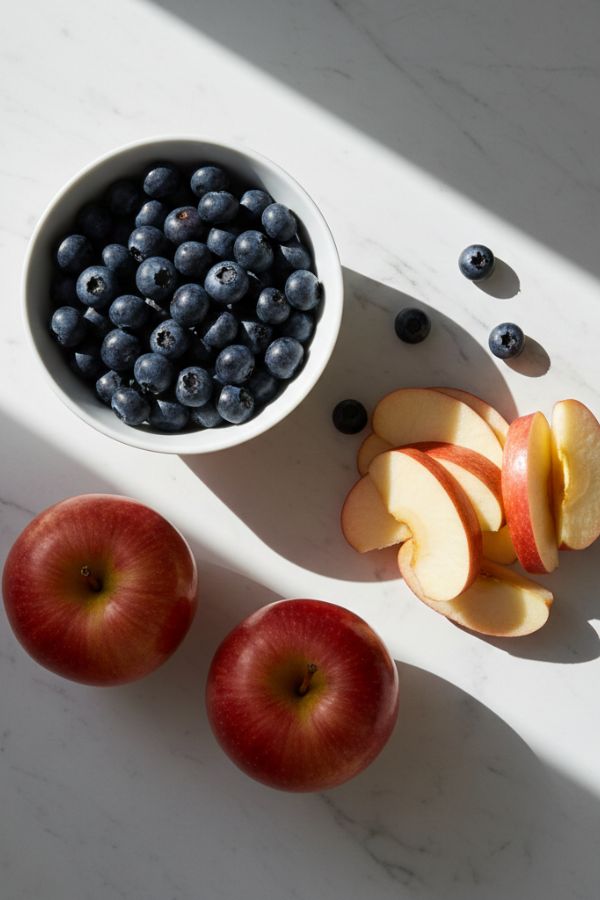 - Prepare the Fruits: Wash the blueberries and slice the apples into thin rounds. Remove the cores.