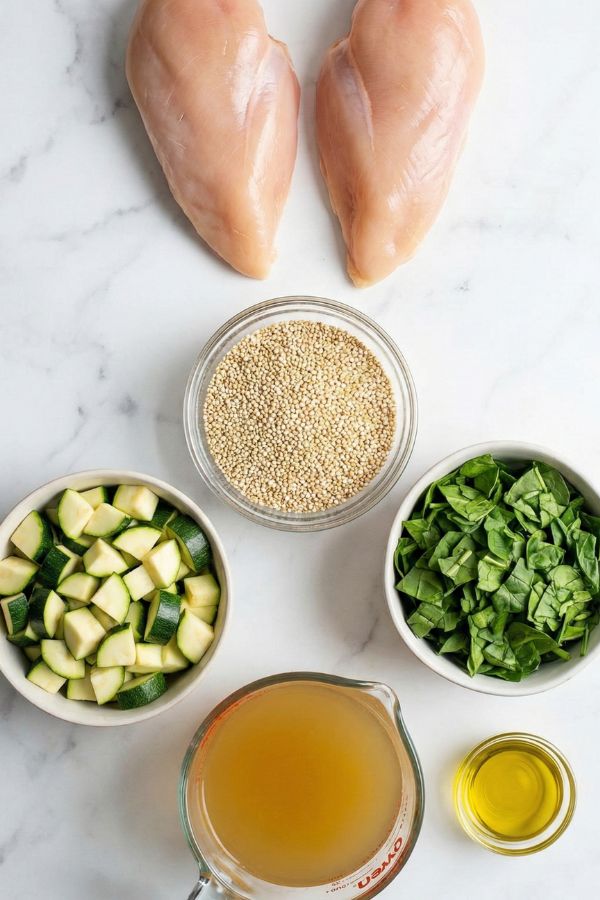 Grab a medium-sized pot and place your chicken breasts in it. Pour in enough water or low-sodium chicken broth to cover the chicken by about an inch—around 2 cups should do it. Set the stove to medium-high heat, and once you see bubbles forming (that’s the start of a boil), lower the heat to medium so it’s gently simmering. Let it cook for 15-20 minutes. To check if it’s done, poke the thickest part with a fork—if it’s white inside and not pink, you’re good. Don’t toss the liquid yet; we’ll use it later!