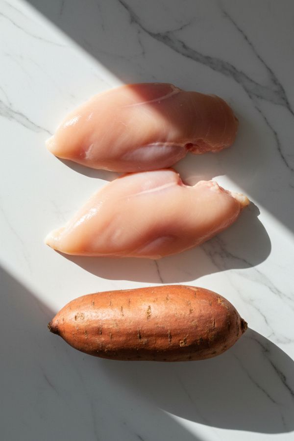 - Preheat your oven to 250°F (120°C). The low temperature ensures the chicken and sweet potatoes dry out slowly, retaining their nutrients.