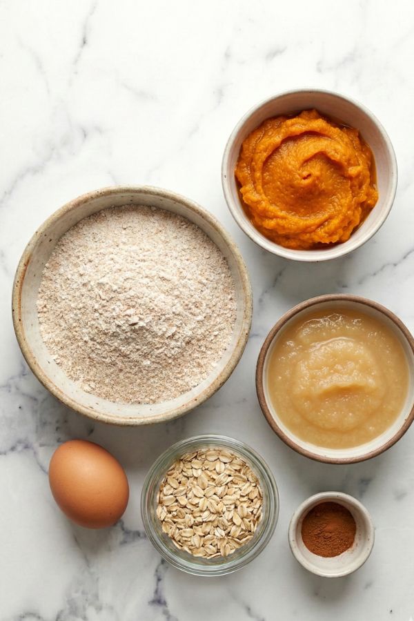 - Combine Wet Ingredients: In a large mixing bowl, whisk together the pumpkin puree, applesauce, and egg until the mixture is smooth.